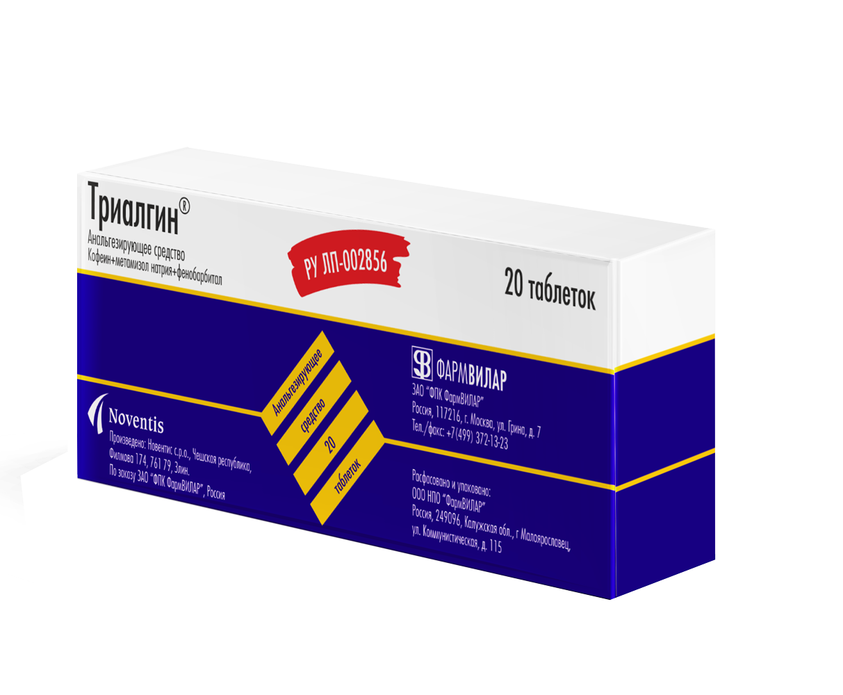 Мощное действие комбинированного препарата Триалгин ® обусловлено уникальным тройным составом для быстрого и эффективного избавления от боли. Препарат Триалгин ® прекрасно переносится.